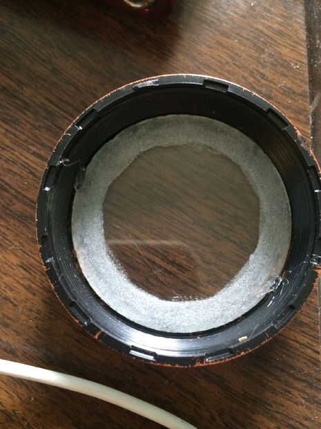 Tome el lente y colóquelo en el ocular de las gafas. Luego tomar los LEDs y ponerlos contra el lente. Le puse unos toques de pegamento caliente para sostener la pieza de la lente y el ojo. La soldadura fue utilizada aquí para ajustar los cables positivos y negativos que fueron atados a los LEDs para que estaban estrecho para arriba como se ve en la imagen dos. Esto es así mientras que la lente se enrosca en, los cables no romper ni coger en las paredes de las gafas.