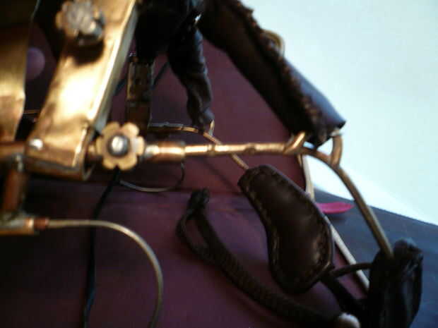 aquí es algo rápido y barato lanzó para una Convención steampunk. Se hace de trozos de piel artificial, un viejo cinturón de buena voluntad y un par de latas de almacenamiento imán con un poco de pintura en aerosol y pegamento caliente.No tengo fotos