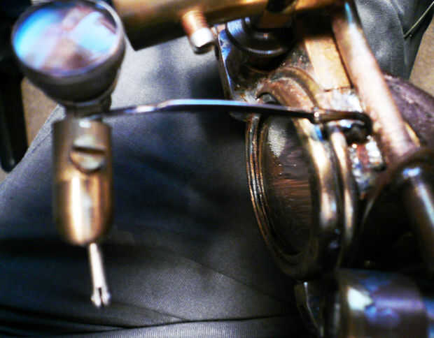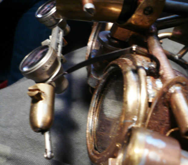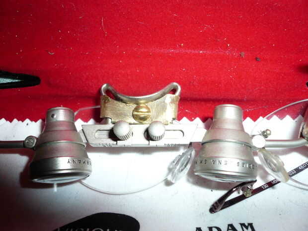 Para proporcionar más aumentos, un par de lupas Zeiss de redundante de 2,5 X potencia, fueron adaptadas para encajar el marco de visión potenciador y haciendo uso de las bisagras del marco de acero inoxidable, estos fueron adaptados para poder hacer pivotar abajo en la vía visual para un mayor aumento de trabajo ultra fino o mover fuera del camino para la visión menos detallada. Cuando se hace pivotar abajo en la vía visual, las lentes se llevan a cabo in-situ por la acción del resorte de los vástagos de acero inoxidable y un sistema de muescas de ajuste de fricción de agujero de guía. Curiosamente, he adquirido estas lentes gratis después de colocar un llamamiento por la donación a través de la Página Web de la sociedad quirúrgica local. Los cirujanos utilizan las lupas para hacer el trabajo fino y, como lentes, son de poca utilidad para fines de reventa una vez que el cirujano se retira o deja de funcionar.