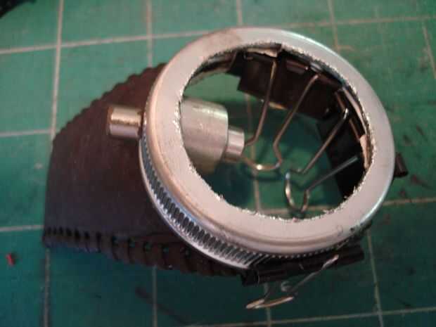 Utilizando algún pegamento de gorila o algo comparable, asegurar las lengüetas en el ocular, abrazadera hacia abajo y deje secar.