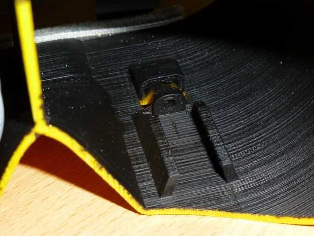 Tienes que cortar la goma para conectar con hebillas. Córtelo en piezas largas de 40 cm y 60 cm. Largo de lado a lado y más corto desde la parte superior hacia atrás. Ayuda a mantener la estabilidad de los auriculares. En la parte de atrás debe usar "head_rubber_band_back.stl" conectar la goma las bandas, pero creo que debe ser más gruesa en la próxima versión.