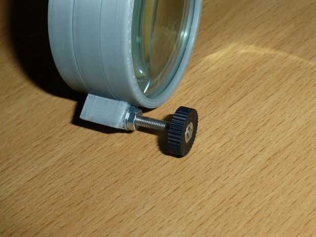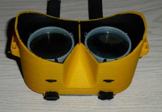 Hebillas de goma fue impreso con ABS negro y lentes con ABS gris. Pero creo que debe ser negro, como un cuerpo principal dentro para evitar llamaradas de luz. Pero fue primera versión de prueba para que queden con color gris. Después de imprimir tienes que asseble sostenedor de lentes y lentes juntas, uso una m3 rosca y tuercas. Lentes montados debe introducir guías especiales dentro del cuerpo principal gafas y usar mando impresa para mantenerlo en su lugar. Más adelante se puede ajustar a distancia botones de pantalla (las perillas se colocan en el lado inferior para ajustar la lente con los dedos pulgares). Mando está diseñado para ser ajustado en el orificio para reducir al mínimo las brechas. Evitar cae a mucha luz. Perilla, hay un espacio para el montaje de tuerca m3. Se mueve hilos de fondo lensholder en guías especiales (en mainbody) para ajustar la distancia de la lente de ojos