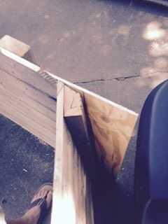 Coloque el extremo puntiagudo con un final de 2 x 4 y coloque la madera donde cruza esa Unión y se apoya contra la 2 x 4.