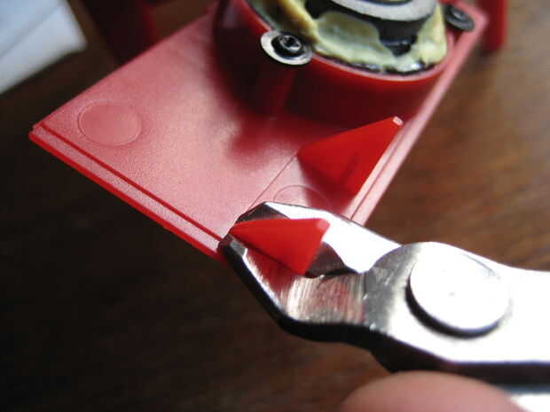 También, cortar cualquier parte de la plástica dentro de la caja que puede interferir con su cierre.