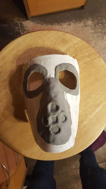 Una vez que la base, pude empezar a construir la cara usando la arcilla de aire seco. Quería tener un perfil decente y no quería que parecen demasiado "dos dimensiones", además de la arcilla terminó siendo un gran lugar para anidar el árbol más tarde. En la foto de arriba tengo los cuatro círculos en la construcción de hocico en la arcilla, pero más tarde me di cuenta que cápsulas funcionan mejor por lo que no es necesario.