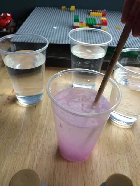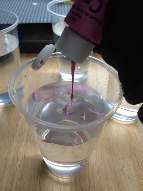 Tomar su pintura acrílica y poner la cantidad deseada en 1 una las tazas. Agitar