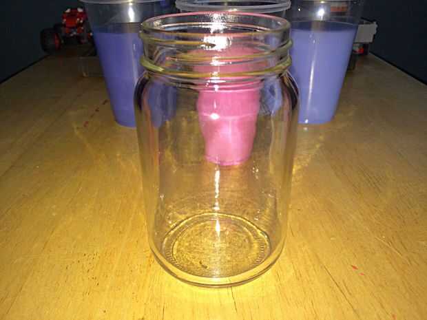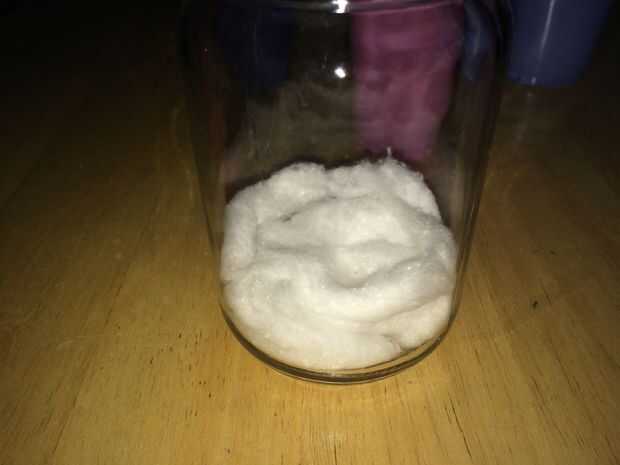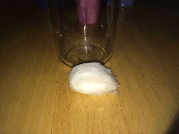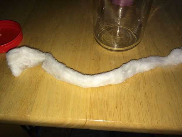 Ahora tomar su vaso hacia fuera y algunas bolas de algodón. Tomar las bolas de algodón y estirarlos hacia fuera como se muestra. Entonces les shove en la jarra.