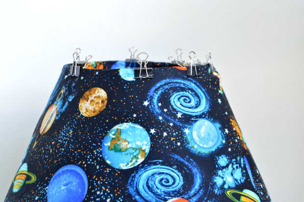 Entonces cubierto a la tela sobre la pantalla y cubrió a los lados con alfileres rectos. Hizo un punto para asegurar los lados y cubierto el tejido volver a la sombra. Clip binder usados para evitar que a la tela se mueva en la parte superior y caliente pega la base doblando los bordes de la tela interior para una mirada más limpia. Repite lo mismo para la parte superior. La pantalla es completa. Montar todas las piezas para completar la imagen. No se arrepiente en absoluto. Habría faltado creando una obra maestra como esta si yo dijo "No" y colocó la tela estampado normal. Me encanta seriamente cómo éste resultó el amor y sobre todo la mirada de la noche es totalmente impresionante. ¿¿Qué te parece??