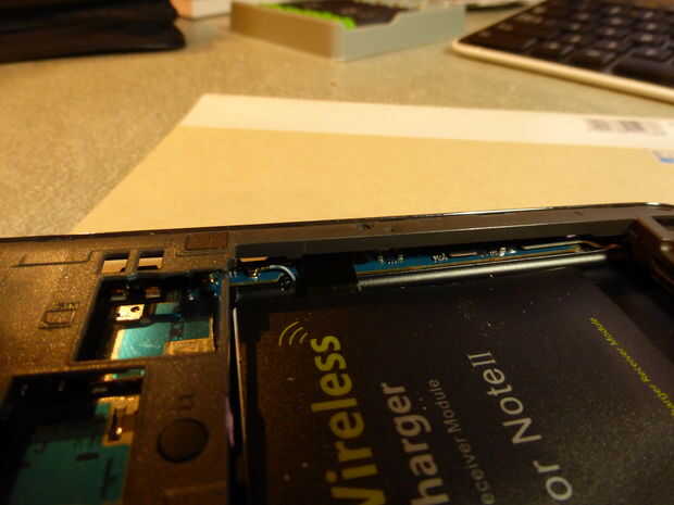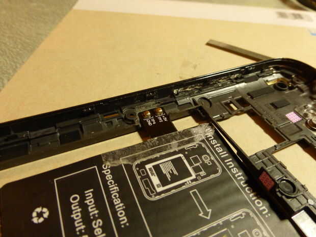 Echa un vistazo a la primera foto y nota los dos sin usar contactos cobre desnudos que he circundado. Esto es donde se suelda en el receptor en el paso siguiente. Tomar minutos para colocar el receptor dentro de la caja, teniendo en cuenta que el conector necesite pasar a través del caso y marque el material que debe ser extirpado.