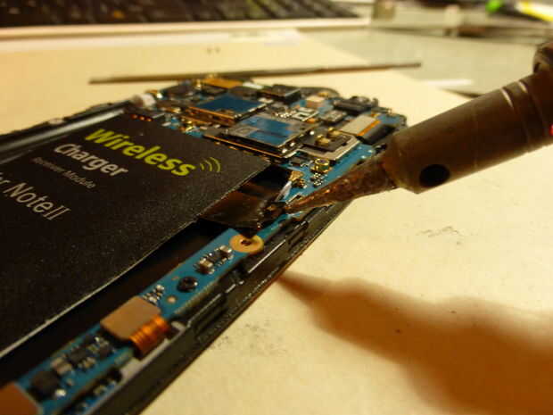 - Eliminar las protuberancias poco conector del receptor. Sólo les calentar con el soldador y aparecerá a la derecha.
