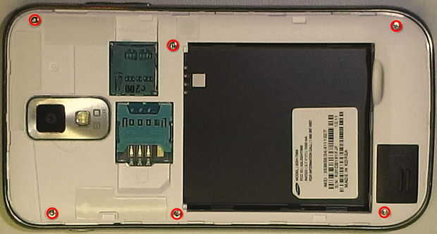 Hay seis 4.0mm PH00 tornillos fijación de la cubierta posterior del dispositivo.