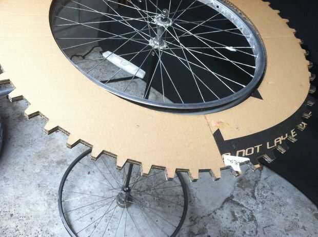 Entonces recibí la corona corte en cartón primero para ver si encajaría mi valla (Consejo: ir a tiendas de bicicletas y pedir para cajas de moto para una buena fuente de cartón de gran calidad). Pegué dos hojas de la cartulina con el corrugado en direcciones opuestas y parecía lo suficientemente robustos para uso de cartón como material real. Estaba inspirado en la bicicleta de cartón y pensé que podría funcionar. Pero luego comenzó a deformar y supe que sería la muerte de mí. Pero los dientes de corte caber la valla así que arrojó al suelo en algunos masonite y consiguió mi CV.