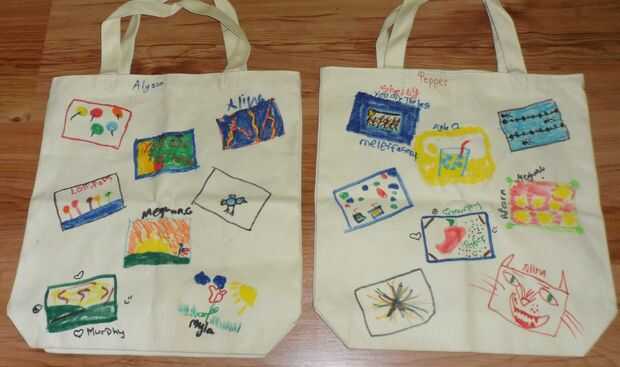Recientemente terminé una gran semana como líder de Junior 7 en la Academia de Bellas Artes de Lilburn campamento de Girl Scouts. Tuvimos dos scout antiguos ayudantes de campo ayudar a nuestra unidad. Como un regalo para estos ayudantes maravillosos, nuestra unidad había decorada una bolsa para ellos. Cada junior tenía una sección de lienzo para crear su obra maestra, y el resultado fue una bolsa de galería de arte para cada CA. Los juniors traídos golosinas para llenar la bolsa.