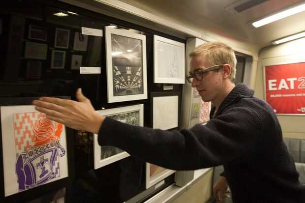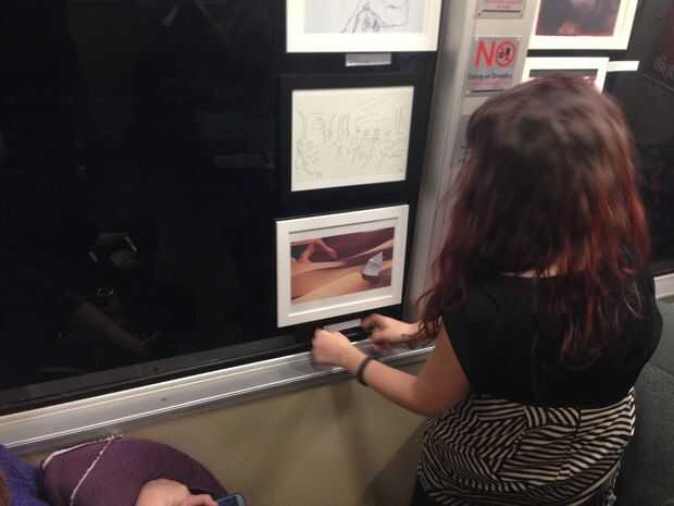 Con todo el trabajo de preparación hecho, colgando el show fue la parte fácil. Llegamos con todo el trabajo, un diseño de colgante y etiquetas para cada pieza en estática se aferran película. Nos subimos en el tren en la primera estación en la línea y tenía la mayor parte de la demostración para arriba antes de llegar a la segunda parada.
