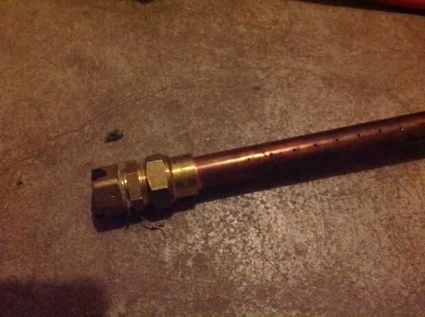IMPORTANTE: Conecte el tubo de cobre solamente después que se ha colocado dentro del contenedor. (una vez que las conexiones se han puesto en su lugar no podrás conseguirlo hacia fuera o en otra vez sin necesidad de agujeros más grandes.)
