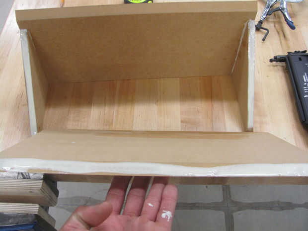 que quería hacer un estante de la pared.Paso 1: Plataforma preparación Encontrar una buena, limpia plataforma para formar la parte posterior de la plataforma. Usé una lijadora excentrica con papel de grano 60. Tomé algunos tablones amplia desde otra