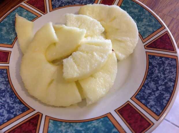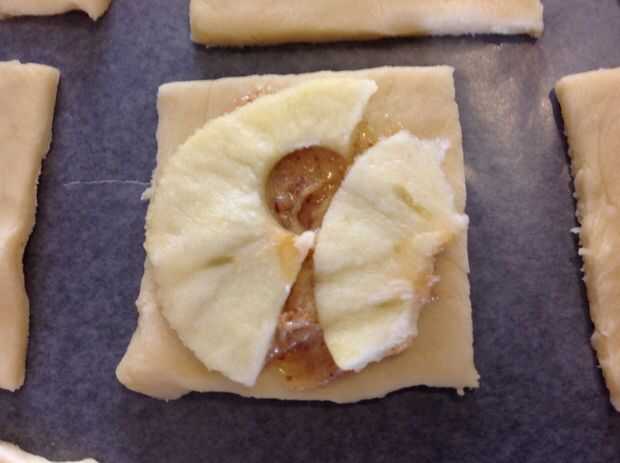 Agregar las manzanas cortadas y peladas sobre la crema de almendras.