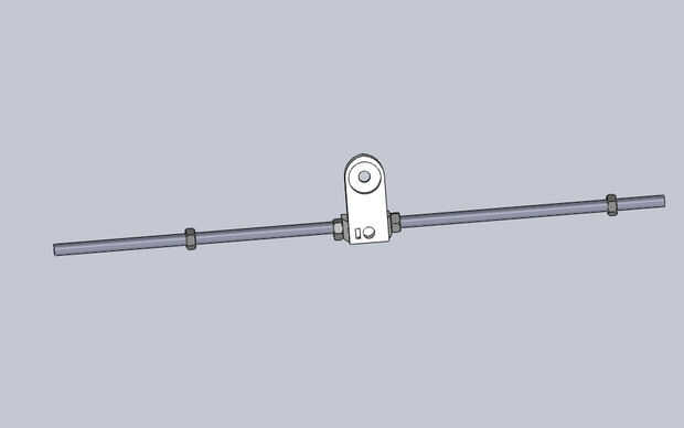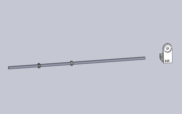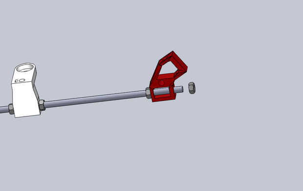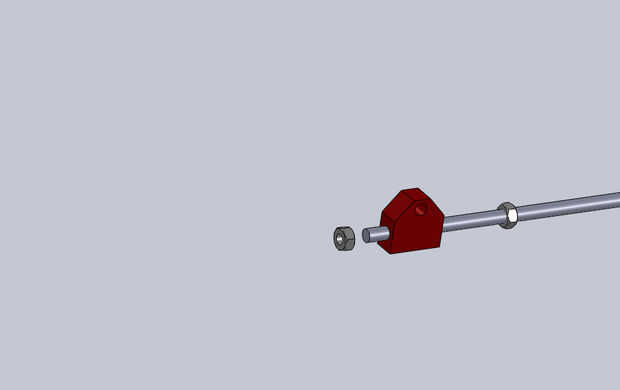3. Seguendo la figura si faccia scorrere il pezzo plastico fino al dado M8 posto un metà della barra e si avviti un altro dado M8 por serrare il pezzo plastico, no importa serrarlo definitivamente poiché successivamente andrà orientato. Si Infine prenda un altro dado M8 e si avviti verso inizio della barra vienen en figura