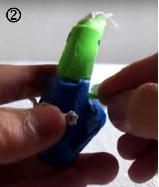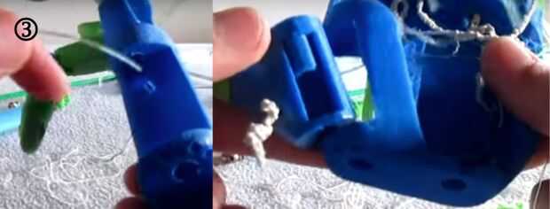 3. Inserte el hilo de nylon que viene de la 03.Tumb_Palm_Mechanism.STL en el agujero correspondiente de la 01.Palm.STL (del hoyo).