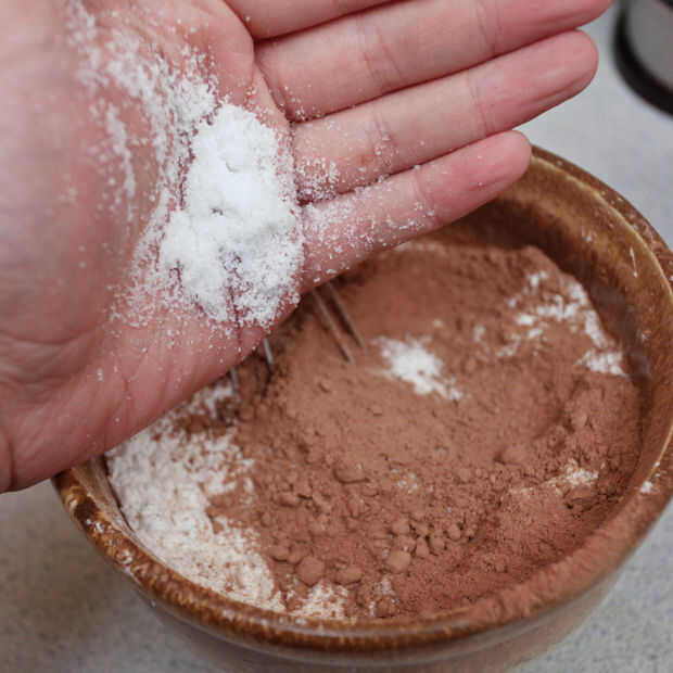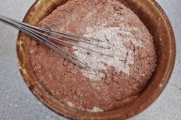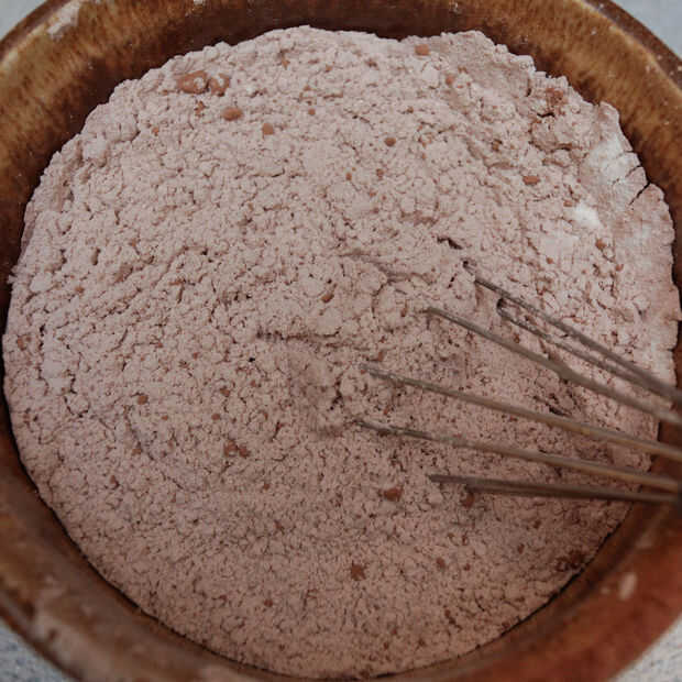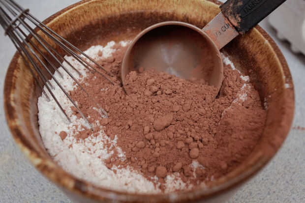 En un tazón pequeño, combine la sal, la harina y el cacao corriente. Batirlos hasta que están totalmente integrados.