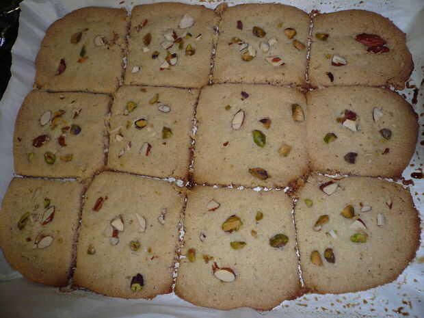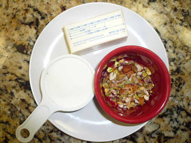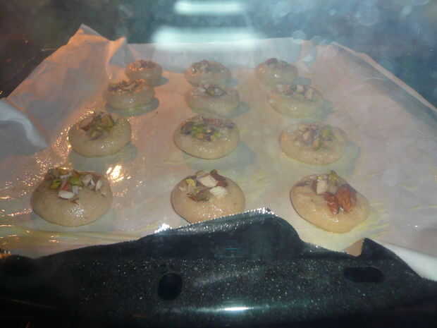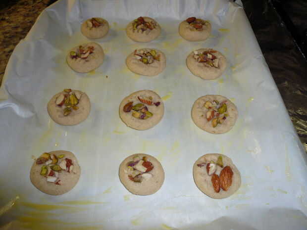 4. Añadir pistachos y almendras (cualquier clase de nueces que te gusta) y pulse en la parte superior de la galleta