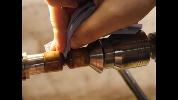 Pegar los extremos y las partes no espiga de la caja y luego pulir todo. Cubrí cada mitad de la galleta en CA cola y grano de arena a alrededor de 1000.