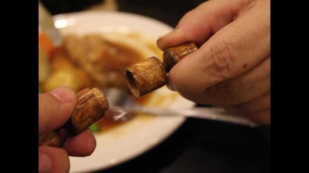 Usé papel azul bruñido y esta izquierda rayas. Cuando regresé a la toalla de cocina blanco fue el problema de la raya. (Se recomienda no utilizar trapos para esto especialmente cuando el torno está en como podría coger y llegar a ser peligroso)
