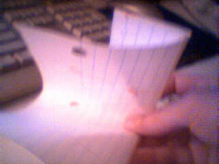 Después de que la punta se dobla hacia abajo, coge el extremo de la galleta del papel y látigo abajo bien duro * BANG *! El resultado varía, pero si se hace correctamente, siempre debe hacer una explosión ruidosa después del primer intento. Pero cuidado, estas cosas rip después de un tiempo, y disminuye su sonido.