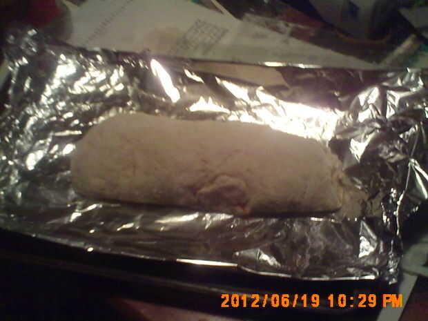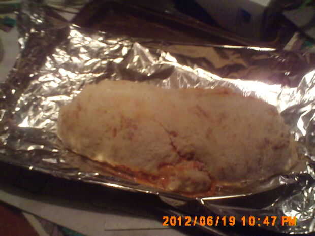 Por este tiempo el horno debe estar listo. Tenga en cuenta el tiempo. Poner la bandeja de galletas en el horno. Mantener un ojo en la pizza de galleta para que no se queme. No debe tomar más de 15-20 minutos como máximo. El strombolli regordete para arriba y dar vuelta a marrón. Después de 15 -20 minutos así que ponen en el guante de cocina y eliminar la cookie de la cacerola.