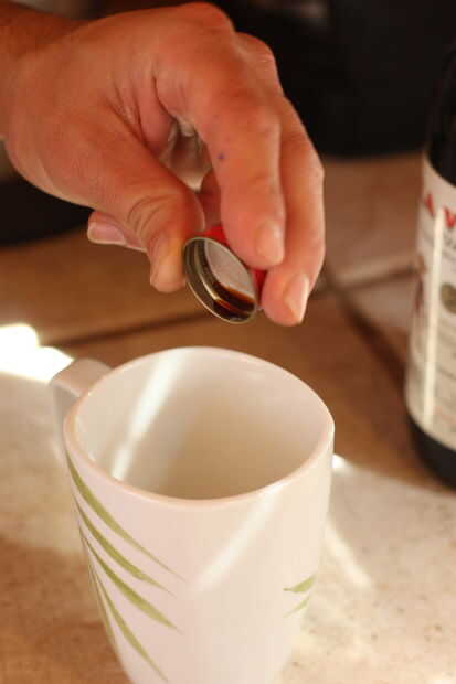 Añadir azúcares, la vainilla y la sal a la taza y revuelva.  Cuando se agrega la vainilla, derramé en la tapa del primero para que accidentalmente no vierta la botella entera.