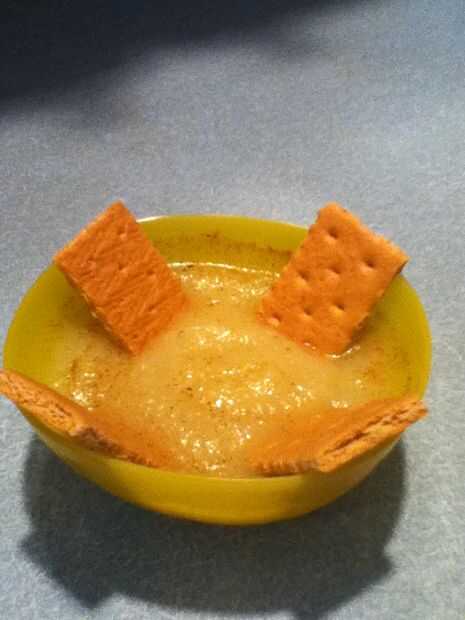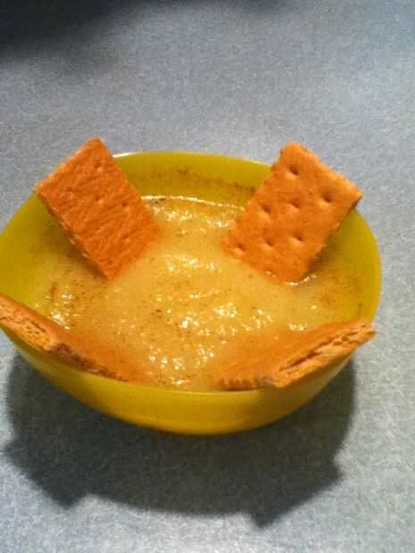 Para montar el bocado, básicamente tienes que verter la salsa de manzana en el recipiente hasta 3/4 de lo completo. Espolvorear algunos canela sobre la salsa de manzana y mezclar bien. Ahora romper al craker de graham en la mitad y luego por la mitad otra vez. Usted puede poner todas las cuatro piezas en el tazón de fuente, pero en realidad es sólo necesario tener dos.
