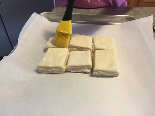 Ponga las galletas en una placa para horno, apenas se tocan. Yo uso pergamino, asegura que nada se pega y los fondos no se consigue demasiado dorados. Cepille la parte superior con mantequilla reblandecida. Deje levar en un cálido lugar libre de corrientes de aire por 1 hora o hasta que casi doble su tamaño. Estas galletas continuará aumentando mientras que cuece al horno.