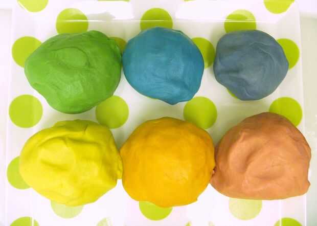 En un tazón de fuente, color cada porción con pasta alimenticia para colorear, a partir de los más pequeños, desde el púrpura hasta el azul, luego verde, amarillo, naranja y finalmente rojo. Comenzar mezclando el color en masa con un tenedor y amasar con la mano si te resulta más fácil.