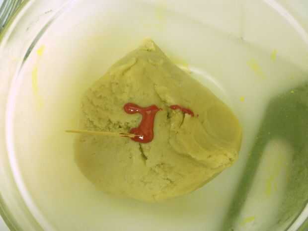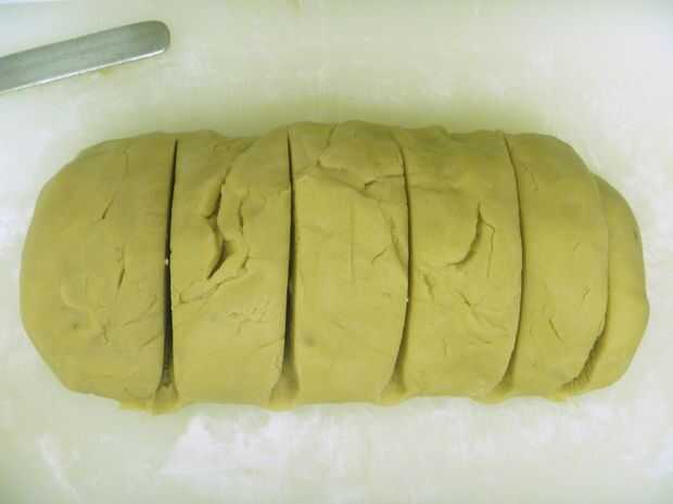 Parte de la masa en 6 pedazos, cada uno un poco más grande que el anterior.