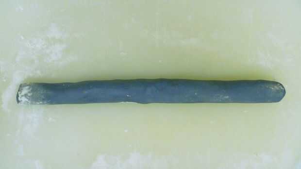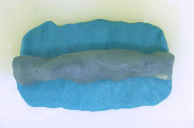 Tomar el púrpura pedazo de masa y formar en un tronco pequeño, aproximadamente de 4 pulgadas de largo.