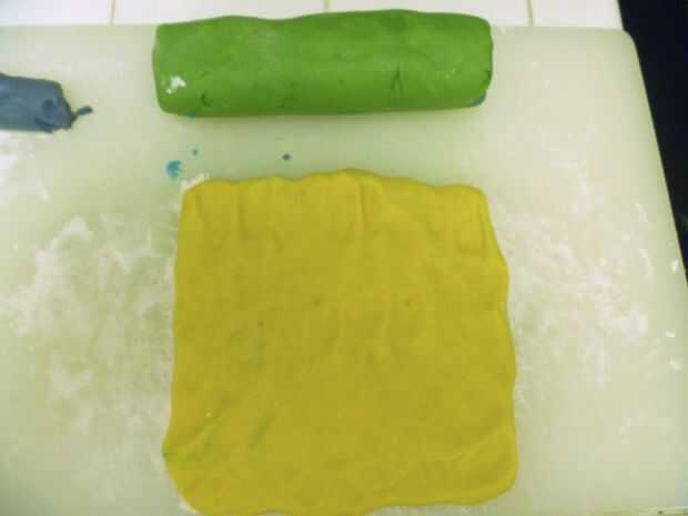 Continuar el proceso con los diferentes colores de masa y balanceo cada una en rectángulos progresivamente más grandes, hasta que el registro contiene todos los colores.
