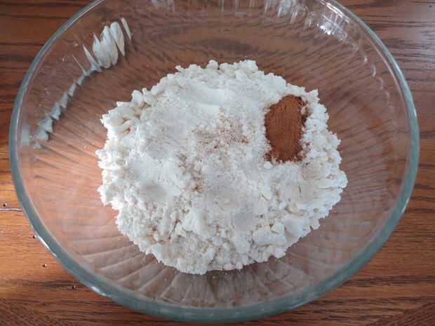 Ahora, en un tazón grande, mezcle la mezcla de galleta y 1/2 cucharadita de canela. Añada la mantequilla y huevo hasta forma una masa suave.