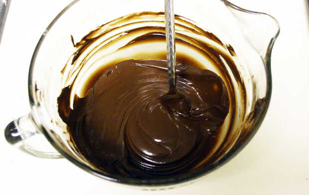 Revolver una vez más, y si el chocolate no es una consistencia suave, continúan nuke en intervalos de 30 segundos hasta que esté suave.