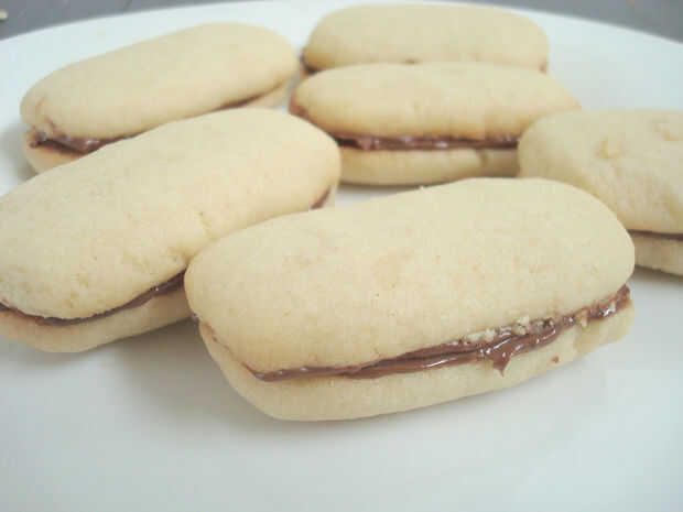 Unir dos galletas añadiendo otra capa fina de chocolate entre dos galletas. Una vez más, poner en la nevera a enfriar durante 10 minutos.