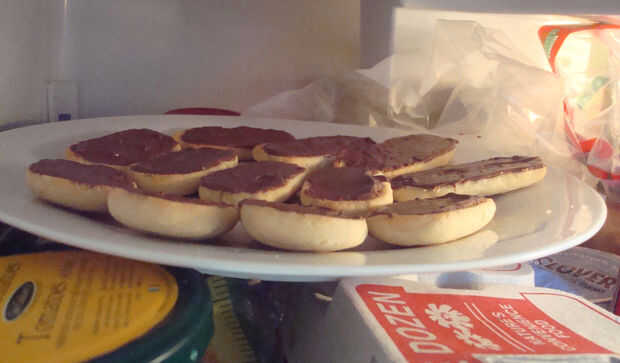 Una vez las galletas salen del horno y se enfríe durante 10-15 minutos, use un cuchillo para extender el chocolate sobre la parte plana de las galletas. Aplique una capa delgada sobre cada galleta y colocar las galletas en la nevera a enfriar durante 10 minutos.