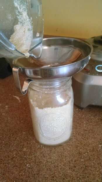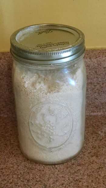 Esta mezcla debe todo ajuste en una jarra de un solo cuarto. A menos que tengas las manos pequeñas con una boca ancha es mejores para el embalaje en. Una vez cómodamente en tornillo tapa, etiqueta y tienda lejos hasta la mañana que caliente bizcochos frescos están en el menú. A menos que usted utilice mantequilla o manteca de cerdo debe durar indefinidamente en el refrigerador y aun si lo has hecho todavía durará un buen tiempo.