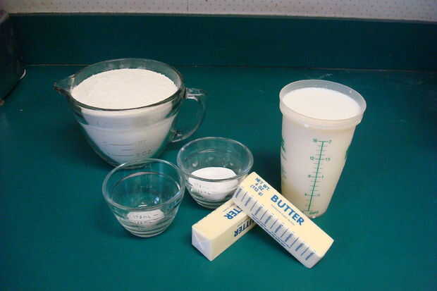 Las galletas caseras perfectasPaso 1: Los ingredientes son la claveDebe usar lirio blanco de la harina para todo uso, manteca y mantequilla real.Paso 2: Batir los ingredientes secos y corte en grasasBatir los ingredientes secos, luego la mantequilla