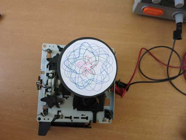 Ahora puede probar estas dos partes. Nosotros les hemos conectado a una fuente de alimentación. También es posible hacerlo con las baterías, aunque es menos preciso. Una vez tranquilizado sobre el buen estado de nuestra electrónica tratamos puntualmente algunos dibujos de espirógrafo antes de llegar al siguiente paso: programación.