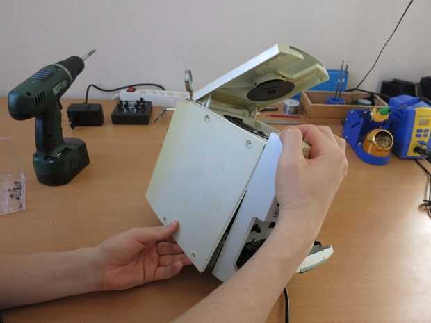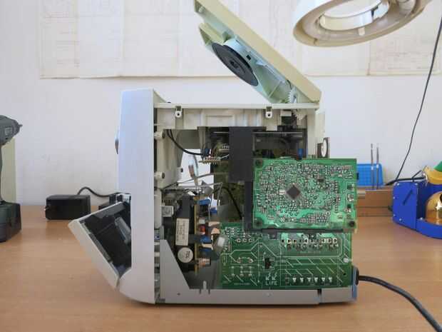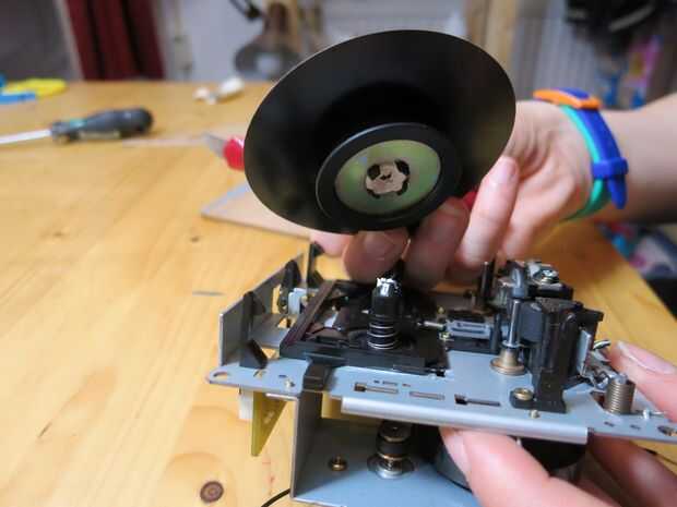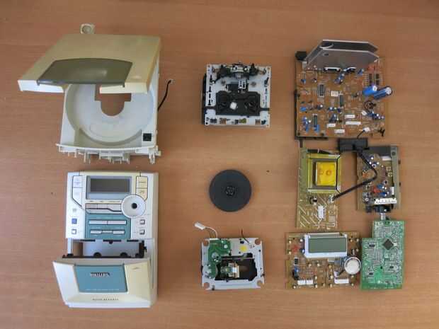 Es importante tener una buena variedad de destornilladores para esta parte. La mayoría de los plásticos son fáciles de romper. Una vez dentro de su objetivo es liberar a dos partes esenciales: el mecanismo de cassette, reproductor y el motor por un lado y el mecanismo del lector CD objetivo con su motor en el otro lado (en el centro del cuadro resumen). Un pequeño truco: la pieza de goma redonda (en la tapa de alta fidelidad que tiene CDs en su lugar, vea el cuadro quinto) es ideal para poner sobre el mecanismo de cassette (con un poco de masilla de cartel) como titular de la cookie futuro.