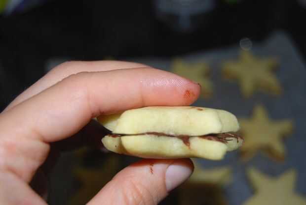 Tomar una galleta y difundir en él un chocolate y cerrar con otra galleta.