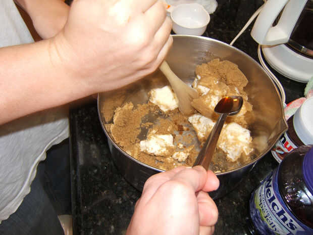 En un recipiente grande empezar mezclando el azúcar, la mantequilla y la vainilla.