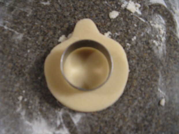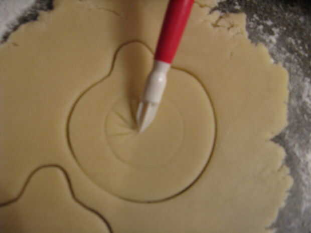 Guión la cookie con la herramienta estrella (como se muestra). No te preocupes si no es perfecta, usted será cubrirla con fondant y repetirlo - esto es sólo hay algunos ident en la galleta sí mismo.