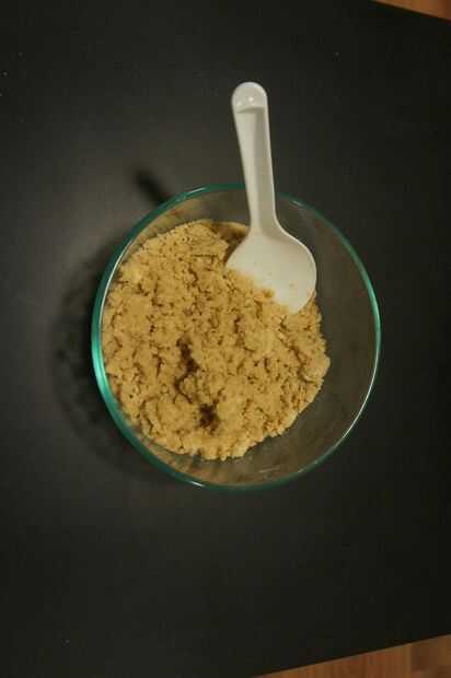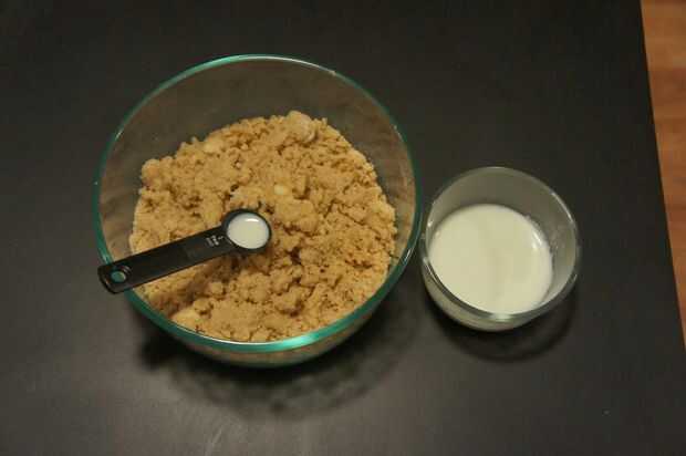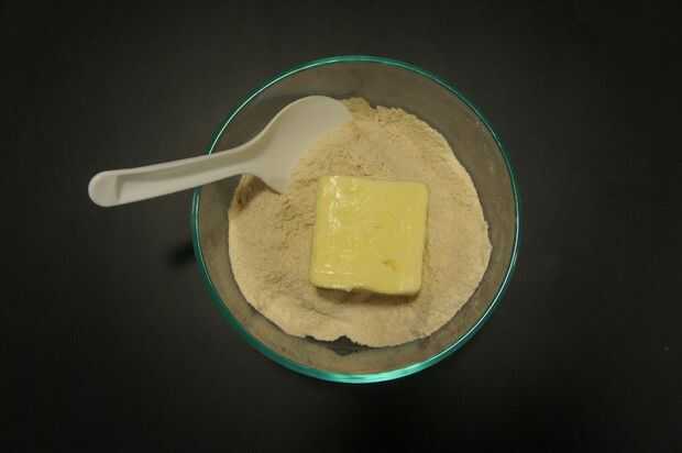 * Añadir mantequilla a los ingredientes secos y mezclar bien. Añadir 2 a 3 cucharaditas de leche y amasar en una pasta suave.