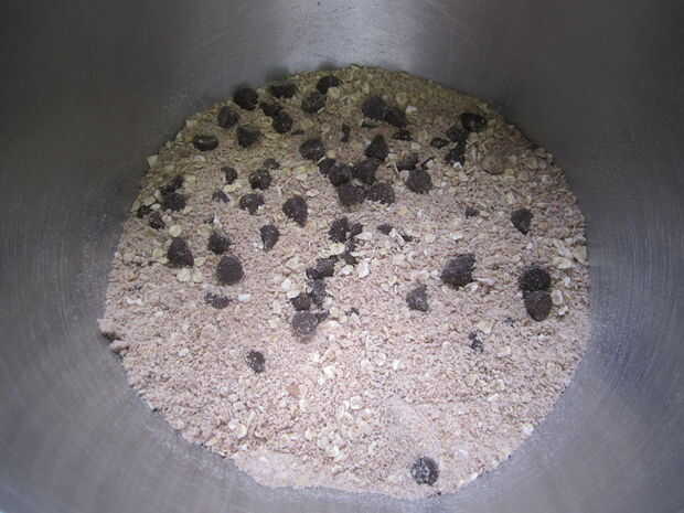 Una vez que están todos en el tazón de fuente, sólo mezcle alrededor hasta que se combinan. Gran trabajo para los niños - sin líquidos todavía!