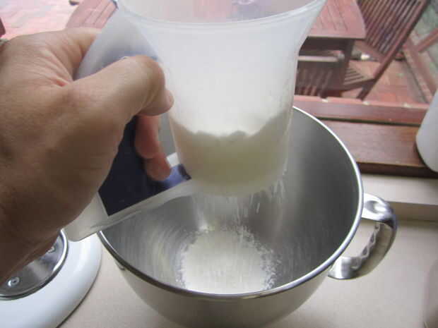-Coloque la taza de harina en el tazón de fuente